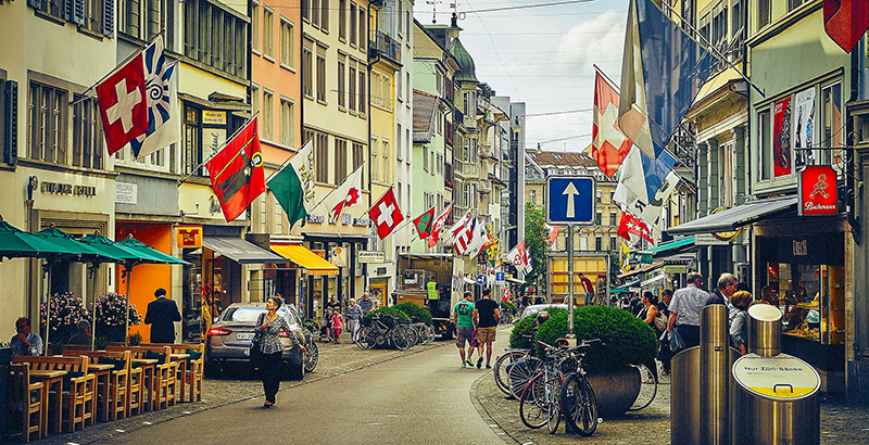 Zurich is the financial and economic capital of Switzerland. The city is located at the mouth of Lake Zurich at the Limmat River. The climate of Zurich is determined by its location in the transition zone between the oceanic and humid continental climate, with the coldest month averaging less than 0 °C and the warmest month not reaching 22 °C, it is classified as a humid continental climate with a mild summer.